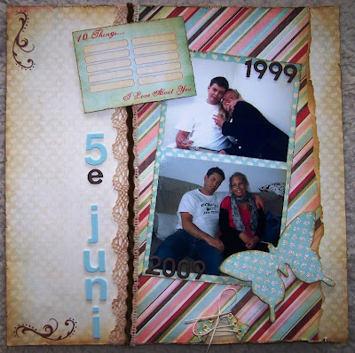 Den andra Lo:n som jag har gjort klart idag är en på min sambo och jag när vi förlovade oss på Mallis 1999 samt vår tio åriga förlovningsdag i somras. Måste nämna att jag tycker att min sambo blir bara snyggare och snyggare. Jag har inte skrivit i texten än på journalingrutan för det är privat, så det kommer jag göra innan jag stoppar in den i vårt album.