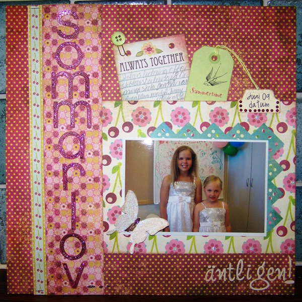 Cyber Cropen på Scrappiz fortsätter och jag försöker att scrappa. Det är ju sjukt bra väder ute, så man vill ju vara ute. Nu har jag dock kommit på att om jag öppnar förnstret vid mitt scrapbord så kan jag stå och sola samtidigt som jag pysslar- Sweeet!!!