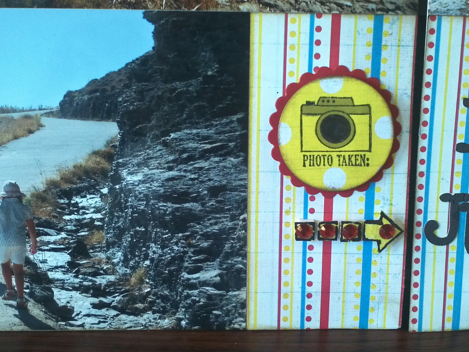 Igår arbertade jag på min/ familjens resedagbok, det är många kort som ska sorteras in och som jag ska försöka få plats med, därför var jag tvungen att göra någonslags fotosida. Jag gjorde en massa fotomattor när jag gjorde albumet men de kommer definitivt inte räcka till. Allt som görs till albumet nu försöker jag att inte dekorera för mycket. Jag vill inte att albumet ska bli för tjockt pga dekorationer, det räcker med alla biljetter, foton och kartor.