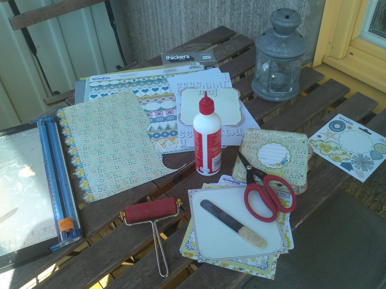 Har nu inte scrappat på tre veckor och idag fick det vara nog. Det är ju kanonfint väder här i Stockholmsområdet och så har det varit sedan jag kom hem från Grekland. Nu har jag plockat ut scrapgrejer på balkongen och sitter helt enkelt där och scrappar.