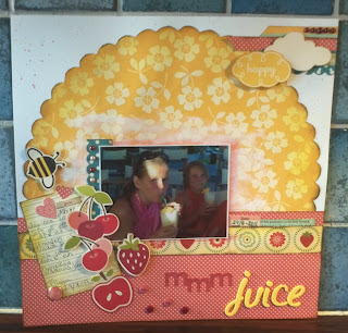 Jag har gjort en LO (LayOut) till sommatävling 1 på Mollys scrapbooking, tack LaVikinga, det var i hennes blogg som jag fick reda på att de hade en tävling. Man skulle inspireras av en gul undulat, dvs scrappa något med gult och med formen runt.