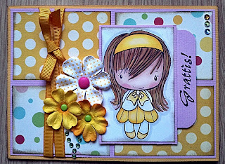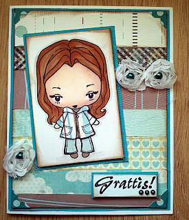 Stämpelmotivet har jag paperpiecat med papper från Maja Design samt färglagt hud med och hår med Promarkers.