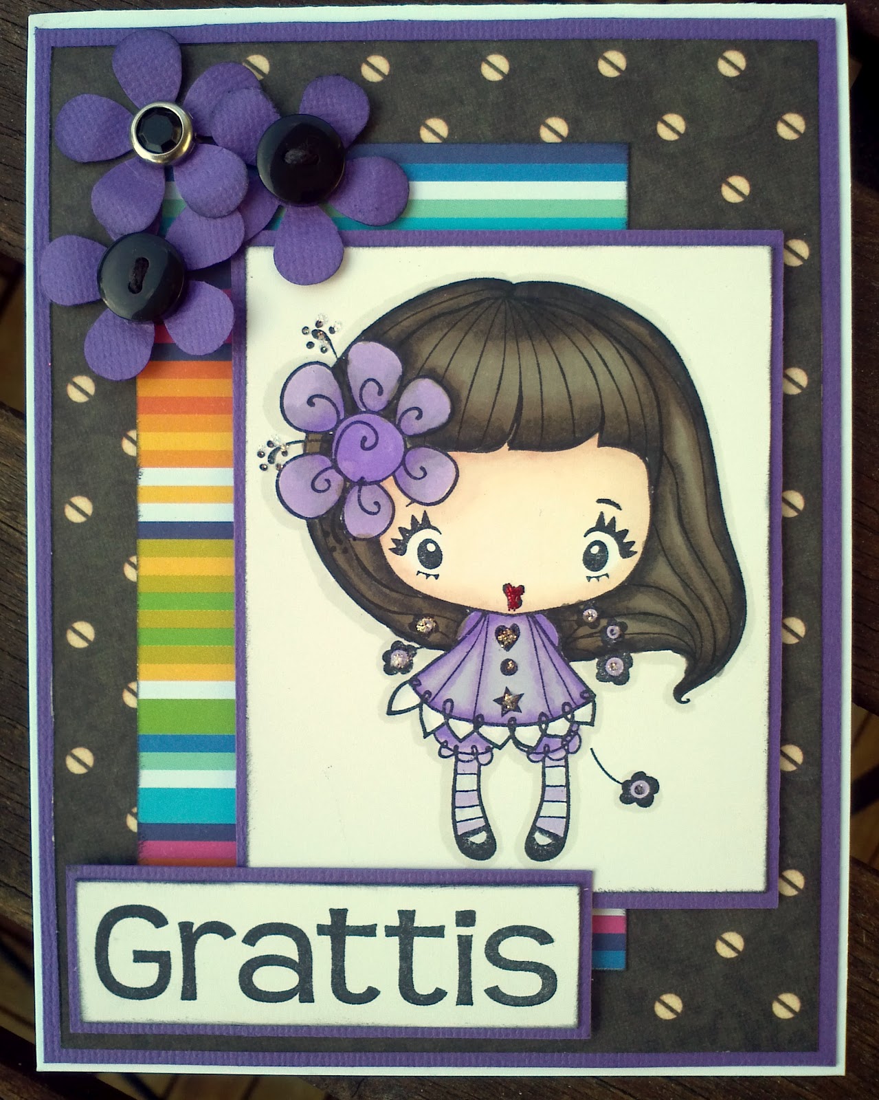 Stämpelmotiv från The Greeting Farm färglagd med Promarkers. Svårt att måla svart hår, måste öva.