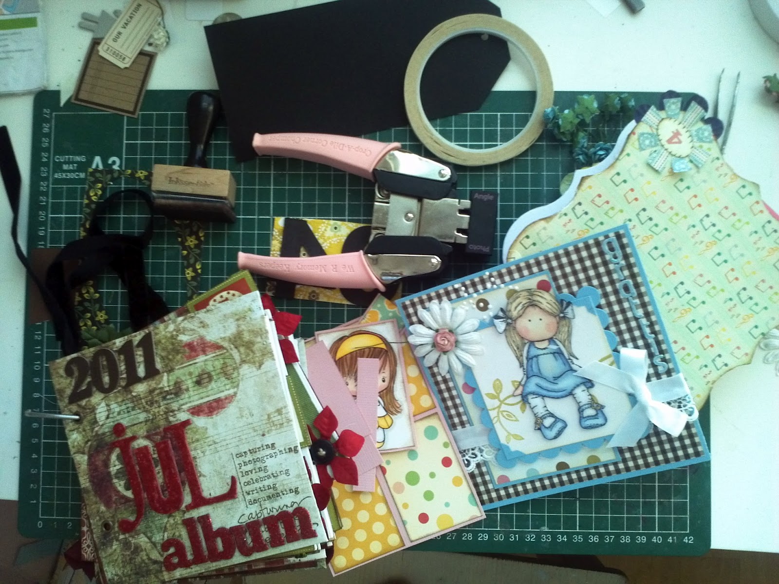 Har även två kort och en stor tag på gång, det ena kortet, det blå till höger på fotot, blev jag klar med för en stund sedan och det är till en utmaning på Papertake Weekly Challenge.